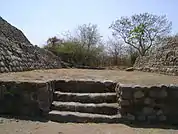 This site, as well as many others in the region, have shaft tombs, one of these is near structure 6, Tomb No. 7, which besides in addition to the vault where various fragments of human bodies were buried, has a stepped corridor and major offerings that include a dog and clay mask.
