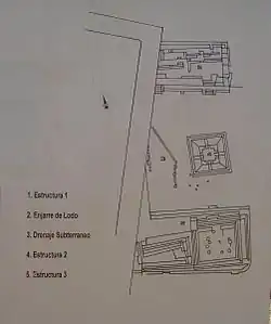 It is important to note the presence of streets, a storm drainage system of and a religious and administrative center, with numerous monuments, as well as housing areas, areas with homes erected on platforms both circular and rectangular, with cane and adobe walls and palm ceilings, per the needs of a highly seismic region.[3]
