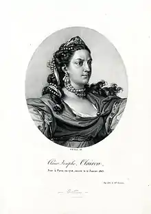 Clair Josèphe Hippolyte Leris (25 January 1723 – 29 January 1803), known as Mademoiselle Clairon or La Clairon was a French actress, born at Condé-sur-l'Escaut, Hainaut, the daughter of an army sergeant. She is primarily known for developing a new style of acting in which she encouraged focus on the emotional connection between the actor and the character they played instead of what she saw as the stiff portrayals of characters traditionally performed in one manner.[1]