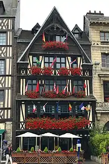 La Couronne, founded in 1345, is the oldest inn in France. It is located in Rouen, capital of the region of Normandy.[1] It is in the historic city center and the dining room on the 1st floor contains paintings of personalities.[2] In 1948, the restaurant served chef and author Julia Child her first French meal, which was said to inspire her to devote her life to promoting French cooking.[3][4][5]