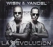 "La Revolución Evolution" (La Evolución in Latin American edition) is the name of the re-release album of La Revolución, released on November 23, 2009.[2] This album include all songs of La Revolución except the track "Descará". However, it includes five new tracks and remixes as well as an extra DVD that includes behind-the-scenes footage of Wisin & Yandel’s worldwide tour and the music videos for "Gracias a Tí" (including the version with Enrique Iglesias), "Imagínate" and "Abusadora".[3][4] The album earned the Lo Nuestro Award for Urban Album of the Year.[5]