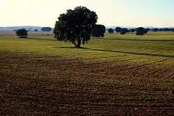 La Mancha (Spanish pronunciation: [la ˈmantʃa]) is a natural and historical region in the Spanish provinces of Albacete, Cuenca, Ciudad Real, and Toledo. It is an arid but fertile plateau (610 m or 2000 ft) that stretches from the mountains of Toledo to the western spurs of the Cuenca hills, bordered to the south by the Sierra Morena and to the north by Alcarria.[1] The La Mancha historical comarca constitutes the southern portion of Castilla-La Mancha autonomous community and makes up most of the present-day administrative region.