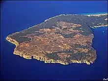 La Mola is a peninsula that forms the eastern end of the island of Formentera, in the Balearic Islands of Spain, in the western Mediterranean Sea. It contains the highest part of the island, with an elevation of about 200 m, as well as the village of El Pilar de la Mola, and is surrounded by high coastal cliffs. The natural vegetation of the peninsula includes native coniferous woodland as well as garrigue and maquis shrubland. The main human uses of the peninsula include hunting and arable agriculture.[1]