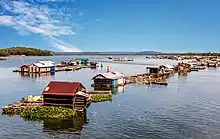 Floating dwellings on the Trị An Lake at the confluence with the Đồng Nai River