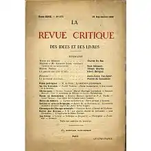 La Revue critique des idées et des livres was a French journal of political and literary criticism from 1908 to 1924. It was established by Jean Rivain and Eugène Marsan. It was influenced by the ideas of the Action Française.[1] From 1908 Lucien Moreau and Jean Rivain were the key contributors to the review.[2]