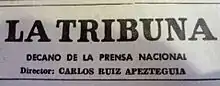 La Tribuna was one of the most important daily newspapers in Paraguay's history. It was founded in 1925 in Asunción by Eduardo Schaerer, and was the country's leading newspaper for five decades.[1] La Tribuna was the first Paraguayan paper to be widely published across the country. Politically, La Tribuna was positioned between liberalism and traditional national politics. It opposed especially the dictatorial regimes of Higinio Morínigo and Alfredo Stroessner.[2] During these dictatorial regimes, the editors became the target of persecution.[3] Their crusade in favor of the Free Press in Paraguay gained attention abroad. In 1953, the newspaper's director, Arturo Schaerer, received the María Moors Cabot Prize from Columbia University.