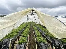 The strawberry farm is located in Barangay Betag of La Trinidad, Benguet and is owned and maintained by the Benguet State University (BSU).[1] The BSU leases at least 500 to 1,000 square meters (5,400 to 10,800 sq ft) lots of the 79.49 hectares (196.4 acres) farm to local farmers for strawberry cultivation.[2]
