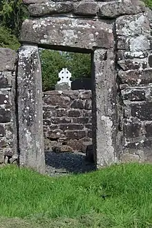 A cross slab in the graveyard bears a Celtic cross in low relief on the west face and a Latin cross on the east face.[8]