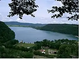 Lac de Chalain is a lake in the Jura department of France. It is located on the territory of the commune of Fontenu. Prehistoric pile dwellings have been found on the western shore of the lake.[1]