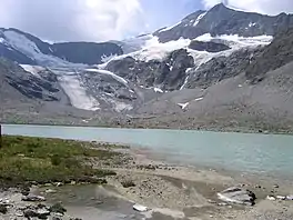 Lac des Évettes is a lake in the Vanoise Massif of the Savoie department of France. The lake formed between 1939 and 1949, after the glacier that covered the area melted. Today the glacier ends almost 1 km from the lake's shore.