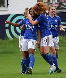 Lachante Paul (11) congratulated after scoring for Leicester City in 2019