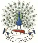 The school's peacock emblem is the crest above the arms of the Manners family.[3] The motto, 'Pour y parvenir', is also derived from the Manners family and its translations include "To attain", or "Strive to Attain".