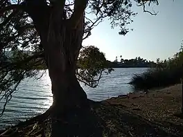 Laguna Lake a lake and seasonal reservoir in the upper Los Osos Valley, in San Luis Obispo, California. It lies at an elevation 121 feet (37 m). It is supplied with water from various small watercourses from the surrounding valley but especially by Prefumo Creek a tributary of San Luis Obispo Creek that enters the lake at 35°15′51″N 120°41′32″W / 35.26417°N 120.69222°W. The Lake is also drained by Prefumo Creek at from its eastern end at 35°15′35″N 120°41′01″W / 35.25972°N 120.68361°W that drains to San Luis Obispo Creek.[1]