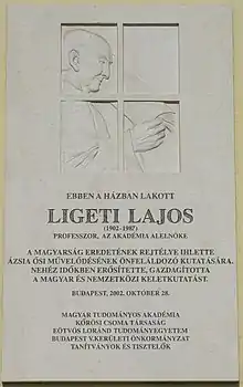 Lajos Ligeti (October 28, 1902, Balassagyarmat – May 24, 1987, Budapest) was a Hungarian orientalist and philologist, who specialized in Mongolian and Turkic languages. After completing his secondary studies in his native town, he entered the prestigious Eötvös-Kollégium. He studied classical languages, but concentrated on Turkish and Hungarian philology at Budapest University under both Gyula Németh and Zoltán Gombocz, obtaining his doctorate in 1925. He spent three years on a scholarship in post-doctoral research in Paris where he studied Chinese under Henri Maspero, Tibetan under Jacques Bacot, and Mongolian and Inner Asian languages under Paul Pelliot, one of the three students, the others being Denis Sinor and Francis Cleaves who carried on Pelliot's work in Mongolian studies, and his closest disciple.[1]