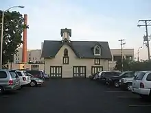 The Lake–Peterson House property has an extant outbuilding, the carriage house, which is also cast in the Gothic Revival style.[4] The Lake-Peterson Carriage House was built around the same time as the main house. The building features clapboard siding, arched windows and decorative vergeboards. The carriage house's most striking feature is its multi-gabled louvered cupola.[3] Surviving, contemporary outbuildings are unusual.[2] The carriage house, aside from the Lake–Peterson House itself, was identified as architecturally significant by the Illinois Historic Sites Survey in 1974.[2]