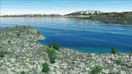 ![]() Simulation of Lake Alamosa's surface, looking towards Blanca Peak | |