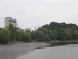 Lake Băneasa (Romanian: Lacul Băneasa) is a reservoir on the Colentina River at Băneasa in Sector 1 of Bucharest, Romania. The lake has a length of 3 kilometers (1.9 miles), a width between 50 meters (160 feet) and 400 meters (1,300 feet), a surface area of 40 hectares (0.40 km2), a depth between 1 meter (3.3 feet) and 3 meters (9.8 feet), a volume of 630,000 cubic meters (22,000,000 cubic feet) and a debit of 2.5 m/s.