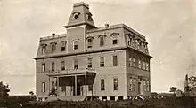 On October 2, 1890, Lake Charles College opened its first term, its main building complete at a cost of nearly $20,000. It was a three-story, 14-room building sized 55 by 85 feet.[10] It offered both a collegiate program and a preparatory program, roughly equivalent to a high school of the time; throughout its existence, the vast majority of students were enrolled in the preparatory program.[11] Roughly a third of its students came from the children of recent immigrants from the North.[12]