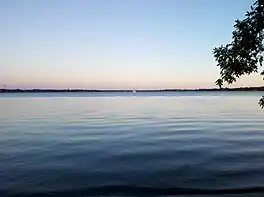Lake Kampeska is a 5,250-acre (21 km2)[1] inland glacial lake in the U.S. state of South Dakota. It is located west-northwest of Watertown, South Dakota and lies entirely within Codington County and the Coteau des Prairies. The lake is naturally shaped and the most urban developed lake in South Dakota with approximately 13.5 miles (20 km) of residential shoreline.[2] Lake Kampeska is connected to the Big Sioux River through a single inlet-outlet channel located on the northeast side. It is the third largest natural lake within the borders of South Dakota.