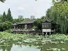 Lake Shi (Chinese: 石湖; pinyin: Shí Hú) or Shi Hu, literally Stone Lake, is a fresh water lake located in the southeast of Suzhou, Jiangsu Province. It is closed to Shangfang Mountain, which is a national forest park of China. The most famous spot of it is "Lake Shi String of Moons" (石湖串月) on August 17 of the Chinese calendar, when nine reflections of the moon appear in a line. Lake Shi was a bay of the Lake Tai in ancient times.[1]