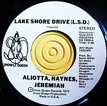 "Lake Shore Drive" is a song written by Skip Haynes of the Chicago-based rock group Aliotta Haynes Jeremiah, initially recorded on December 31, 1971, and released on their 1973 Lake Shore Drive album on Big Foot Records. The song is a homage to the famed lakefront highway in Chicago. Despite the fact that "LSD" had long been an abbreviation for the Drive, many people thought the song referred to the hallucinogenic drug lysergic acid diethylamide. Numerous fans of the song and residents of Chicago believe the song paints an accurate musical picture of living and driving in downtown Chicago.[1]