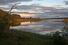 Lake Sterzh (Стерж) is the third largest among the Valdai Lakes in Tver Oblast of Russia. It is the first lake through which the Volga flows. The lake's length is 12 kilometres (7.5 mi), its width is up to 1,500 metres (4,900 ft), and the average depth is 5 metres (16 ft). The surface area of the lake is 17.9 square kilometres (6.9 sq mi).[1] The lake gives its name to the Sterzh Cross.