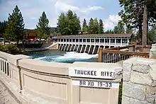 Tahoe Dam regulates the top six feet of Lake Tahoe, and distributes the water into Tahoe's primary outflow, the Truckee River.[1] The dam is located in Tahoe City and serves as the main storage facility for the U.S. Bureau of Reclamation's Newlands Project that also includes the Lahontan Dam and two diversion dams, providing irrigation water for 55,000 acres (22,000 ha) of cropland mainly in the Lahontan Valley of western Nevada.[2] The present Lake Tahoe dam replaced an older, privately owned dam built in 1870 at roughly the same location.[3]