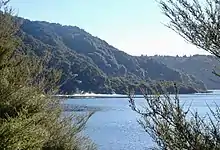 The main hot water sources are in the southern section of the lake at the Wairua Stream, Hot Water Beach and Te Puha and Tarawera fumaroles. There is also a small geothermal area at Humphrey's Bay, to the south of Lake Ōkataina.[2]:69 Water varies between 37 °C (99 °F) and 90 °C (194 °F).[9] Lake Tarawera's outflow at its north east end, has been heavily influenced by the local geology, with a mean 7 m3/s (250 cu ft/s) discharged on the surface into the Tarawera River, which flows north-east into the Bay of Plenty.[8]:491 An estimate of subsurface outflow has been made by measuring flow below Tarawera Falls where total river flow has increased to 9.9 m3/s (350 cu ft/s).[2]:47
