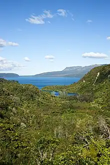 The lake was substantially affected by the eruption of Mount Tarawera on 10 June 1886 to the lake's east.[5][6][7][8]:291–2 There were changes in lake level and sediment carriage.[8]:491–2,4