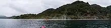 Lake Tarawera is the largest of a series of lakes which surround the volcano Mount Tarawera in the North Island of New Zealand. Like the mountain, it lies within the Ōkataina Caldera. It is located 18 kilometres (11 mi) to the east of Rotorua, and beneath the peaks of the Tarawera massif i.e. Wahanga, Ruawahia, Tarawera and Koa. Tarawera means "Burnt Spear", named by a visiting hunter who left his bird spears in a hut and on returning the following season found both the spears and hut had been burned down completely.[4]