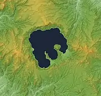 Lake Towada occupies the caldera of a stratovolcano still regarded as an active volcano. This volcano became active around 200,000 years ago, and through repeated eruptions and pyroclastic flows, especially 55,000 and 36,000 and 15,000 years ago, created an 11 kilometer diameter caldera with the proto-Lake Towada. From approximately 15,000 to 12,000 years ago, intermittent eruptions formed a small stratovolcano within this caldera (Mount Goshikiiwa). Intermediate eruptive activity continued and at least eight eruptions of magma occurred from 11,000 years ago to the present. The Ogurayama Lava Dome was formed approximately 7,600 years ago on the northeastern slope of the Goshikiiwa volcano. The Mikadoishi Lava Dome is estimated to be within 12,000 and 2,800 years ago.[2] The collapse of these secondary lava domes approximately 5400 years ago give the lake its distinct shape and the inlet between its two peninsulas (called the “Nakaumi”) is the remnant of a secondary caldera which erupted and collapsed.