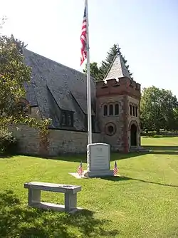 Lake View Cemetery is a historic rural cemetery in the town of Sweden, near Brockport in Monroe County, New York. The cemetery was established in 1891. It includes a Romanesque Revival style chapel / receiving vault, a small pond, a cast iron tiered fountain, and a distinctive serpentine road system.[2] The cemetery has more than 5,000 burials. Among the noted burials are actress Nancy Coleman (1912–2000) and US Congressmen Henry W. Seymour (1834–1906) & Richard C. Shannon (1839–1920).