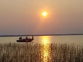 A natural sand bar, which extends along the northwest shore between a fringing cypress swamp and the main lake, was supplemented with spoil dredged to form a neighboring canal in 1946 and developed with private residences. Big Creek delivers tea-colored water from the large cypress and gum tree swamp at the northeast corner of the lake, and the Waccamaw River emerges from the southern shore. A dam at the outlet, built in 1926, now regulates lake levels,[13] which used to fall by as much as a meter during dry spells, occasionally exposing the sand terraces. The dam was renovated in 2008 to help restore control of the lake water levels.