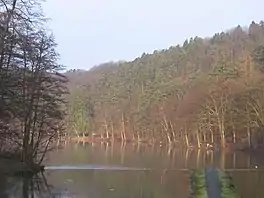 The lake Warfaaz is an artificial lake located in Wallonia near the thermal city of Spa in Ardennes in Belgium. The dam was built in 1892 on the Wayai river. The water volume is 360,000 m³ and the area is 0,08 km². It is a tourist attraction, with water sports, including Pedalo, Fishing.