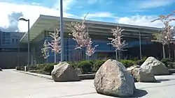 Lake Washington High School is a four-year public high school in Kirkland, Washington, a suburb east of Seattle. It is one of four main high schools in the Lake Washington School District, with an enrollment capacity of approximately 1,500 students.[3] Located in the Rose Hill neighborhood east of downtown Kirkland, LWHS competes in the KingCo 3A athletic conference; the school colors are purple and white and its mascot is the Kangaroo.