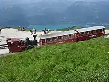 The lake has an area of about 12.9 to 13.1 km² and is surrounded by the Salzkammergut mountain range. On the northern side, the Schafberg is located. A rack railway, the Schafbergbahn leads up to the summit at 1,782 m. Due to the steep shore at its foot only a footpath connects St. Wolfgang and the village of Ried with St. Gilgen along the Falkensteinwand, the set of the Bergpsalmen ("mountain psalms") lyric anthology written by Joseph Viktor von Scheffel in 1870. In the south and southwest of Lake Wolfgang lies the Osterhorngruppe, with heights up to 1,800 metres. Directly south of St. Gilgen rises the Zwölferhorn (1,522 m), which can be visited by cable car.