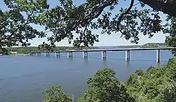 The Lake of the Ozarks Community Bridge is a continuous truss bridge in Lake Ozark, Missouri. Opened on May 2, 1998, the bridge connects the east and west sides of the Lake of the Ozarks. The bridge is over 2,695 ft (821 m) long and 72 ft (22 m). Construction on the bridge began in 1996 and the bridge cost over $43 million.[1] To pay for the cost of the bridge, the bridge is a toll bridge with varying rates depending on the time of year.