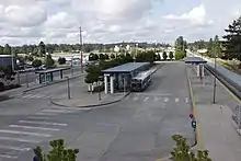 Lakewood station is located along Pacific Highway near its intersection with 47th Avenue Southwest, to the east of central Lakewood.[1][2] The station consists of a single side platform along the double-tracked Point Defiance Bypass,[3] and an adjacent bus station with six bays.[4] A four-story parking garage with 620 parking spaces is north of the bus station and includes a pedestrian bridge over the tracks to Kendrick Street Southwest, near St. Clare Hospital.[5][6] The garage also has 18 covered parking spaces for bicycles.[1]