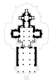 The temple is a trikuta vimana (three shrined) temple where only the central shrine has a tower (superstructure or Shikhara) on top.[4] The two lateral shrines merge into the ranga-mandapa towards the east. The main shrine is for Narayana, the southern shrine is dedicated to Venugopala, and the northern one to Lakshmi Narasimha.[1]