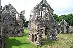 Whilst early thirteenth-century fragments from the old hall still exist,[1] the palace, including the 25 metres (82 ft) great hall, was largely constructed under Bishop Henry de Gower, Bishop of St David's (1328–1347) and was used by high-ranking clergy.[2] The palace was built in three stages and originally had over 20 rooms and featured fishponds, orchards, fruit and herb gardens and areas of parkland with grazing deer.[3][4]