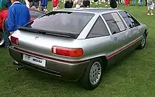 The Medusa was designed by Italian designer Giorgetto Giugiaro in 1979. Giugiaro designed the car to be as aerodynamic as possible, aiming for a target of 0.25 Cd, with the final design achieving a Cd of 0.263. The original the clay model reportedly had achieved a lower reading of 0.255 Cd, but the addition of side mirrors, indicator repeaters and a radiator caused it to go up.[2] The Medusa featured many design elements that were tailored to help it achieve better aerodynamics. Features such as pop up headlights, door handles and window glazing that sit flush with the body, inset turn signal repeaters and doors that wrapped up into the roof all helped the Medusa to be as aerodynamic as possible.[3]