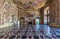 The banqueting halls, especially the Great Hall of Arms, were used mainly for festivities in the late 18th century, such as the visit of Amalia of Parma in June 1783 and Archduke Ferdinand of Milan in 1786.
