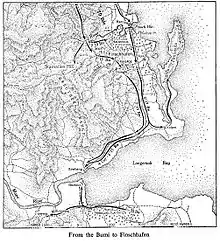 The Japanese launched a counter-attack on the Allied lodgement around Scarlet Beach. A three-pronged action, the counter-attack saw a diversionary attack to the north, while the Sugino Craft Raiding Unit attacked from the sea, and two infantry regiments assaulted the centre aiming towards the beach and the Heldsbach plantation.[109][110] It had been intended that once the beachhead was overwhelmed, that the 79th and 80th Infantry Regiments would link up and then clear the Finschhafen and Langemark Bay areas; but the assault was poorly co-ordinated and failed to achieve sufficient weight to overcome the Australians, while also suffering from a lack of artillery. The seaborne assault was interdicted by US Navy PT boats, which inflicted heavy casualties, and was destroyed by Allied machine gunners on the beach.[111] In the centre, though, the Japanese were able to break through to Siki Cove, and in the process isolated several Australian units, including those fighting on the western flank around Jivevenang, forcing the Australians to resort to air drops to keep their forces supplied.[112][113]