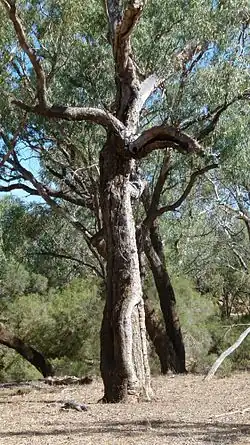The blazed tree that marks Landsborough's Camp 69 is a Coolibah (Eucalyptus coolibah) located near a tributary of the Warrego River system on a grazing leasehold of just under 684 hectares (1,690 acres), about 29 kilometres (18 mi) south of Charleville off the Mitchell Highway near Bakers Bend.[1]