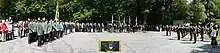 On 13 June 2009 Members of the Langeleben Reunion, an association of former Royal Signals and Intelligence Corps soldiers who had been posted to Langeleben, were back on parade and after marching down from the demolished camp to a nearby clearing they paraded close to a memorial stone that has been erected to commemorate their service there between 1951 and 1992. The stone was carved by Paul Ellis,[3] son of a former Langeleben Serviceman and a UK stonemason of some repute[4] who is Stonemason in Lincoln Cathedral. He offered his services at cost and these were paid for by the members was officially blessed and unveiled.[5]