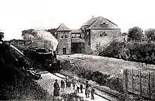 The station was opened in July 1921 as Langenhorn Mitte (Langenhorn Centre), after the Langenhorn railway was in preliminary operation with steam trains since 5 January 1918. The steam trains then used the track of the freight railway from Ohlsdorf to Ochsenzoll, which was located east of the U-Bahn tracks. It was used until 1991 and removed in 2008. In 1966 a new shopping mall was built which extended the marketplace of Langenhorn. Therefore, the station was renamed on 2 June 1969 into Langenhorn Markt. At the beginning of the 1970s the street of Krohnstieg was also extended, and a new bridge for it was constructed, leading across the station and the U-Bahn tracks. In 1973 also a new Park and ride facility was built, which was opened in August 1975 along with the new station entrance from the north, and the station was fully renovated at the same time. Only the old entrance building remained from the old station.[1]
