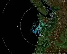 In the late 1990s, a group of university and media meteorologists were joined by local interested groups in forestry, fishing, and municipalities to call for an extra radar to fill the gap.[1] A major motivation for the station was early detection of Pacific Northwest windstorms; a proponent, Professor Cliff Mass of the University of Washington, said it would provide an additional 6 to 12 hour storm warning to residents of the Pacific Northwest.[3] In January and February 2001, a research radar placed at Westport, Washington clearly showed the structure of approaching storms and documented heavy precipitation on the coastal mountains.[1] Even NWS forecasters noted the substantial value to their forecasts.