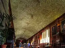 Agar-Robartes had the east wing of the house demolished, leaving the U-shaped plan seen today. In 1880 he commissioned the architect George Gilbert Scott to renovate Lanhydrock House. On 4 April 1881 a major fire destroyed the south wing and caused extensive damage to the central section. The fire started in the kitchen, and a near gale-force wind fanned the flames along the south wing and the ″communicating block″.[5] Of the main house only the north wing, with its 116 feet (35 m) Long Gallery, and the front porch building survived intact, along with the original gatehouse, which dates from the mid-17th century. The gallery was decorated with old plaster work which was considered to be the finest of its type in the west of England with figures representing the creation in ″bas-relief″. The property was insured for £10,000 in the Royal Standard Office and for £10,000 in the County Fire Office, and the damage is estimated to have cost £8,000 to £10,000[5] It was reported in August 1881 that the rebuilding of the house would cost £50,000 and was to be undertaken by Messers Lang and Son of Liskeard.[7] New sections were built behind the south wing, including a kitchen block, in the style of the original building – which was unusual at the time. Agar-Robartes’s wife died five days after the fire of smoke inhalation, and he died twelve months later, reported to be of a broken heart.[8]