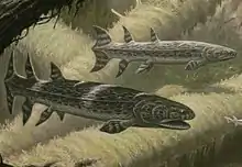 The biggest carnivorous synapsid of Early Permian was Dimetrodon, which could reach 4.6 m (15 ft) and 250 kg (550 lb).[8] The largest members of the genus Dimetrodon were also the world's first fully terrestrial apex predators.[9]