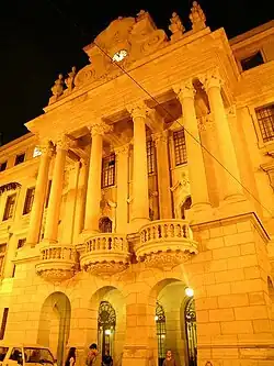 There is a statue of Álvares de Azevedo in front of the building with this quote: "Foi poeta, sonhou e amou na vida", which translates to "He was a poet, dreamed and loved in life".